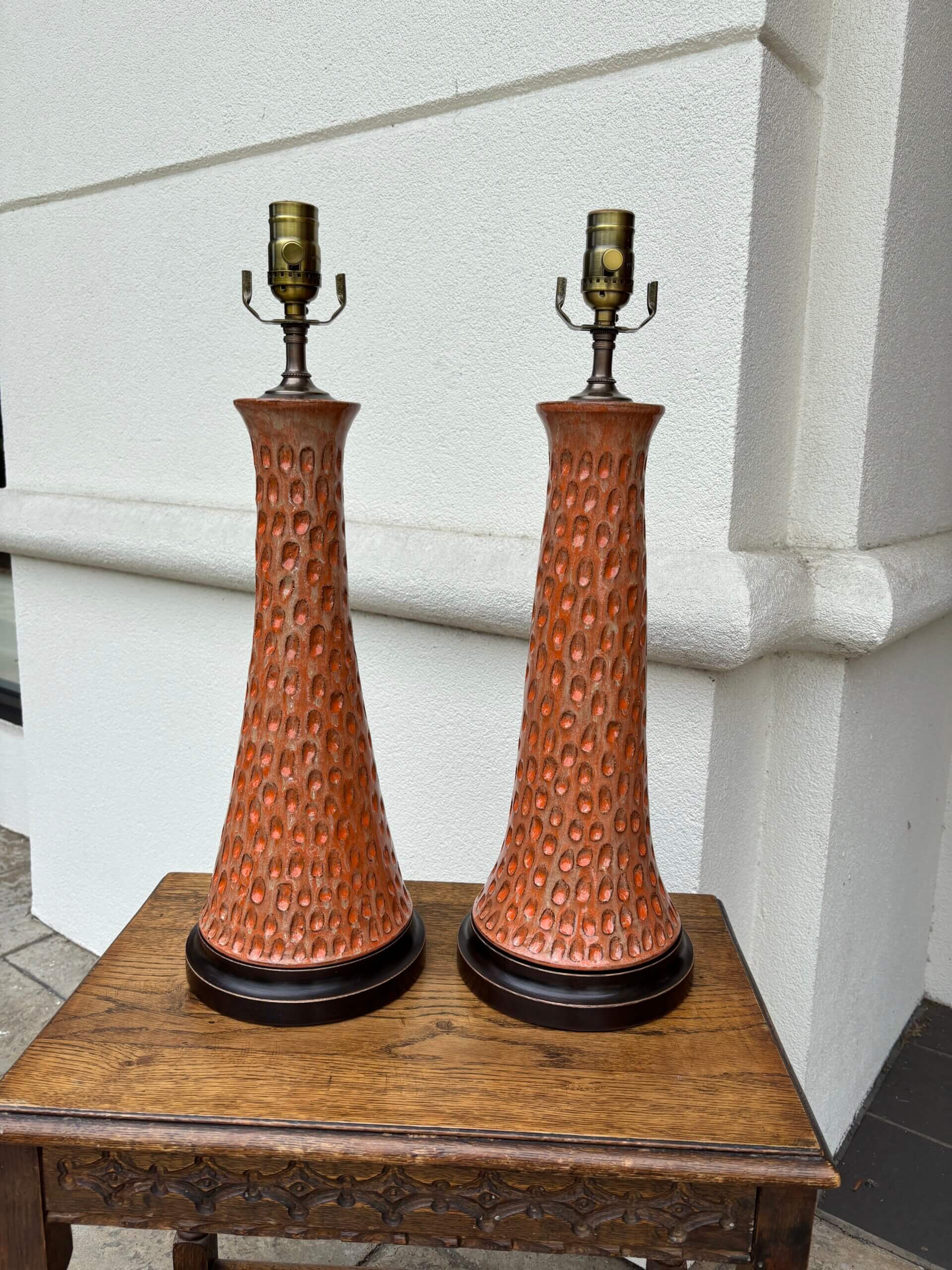 / OUT ON APPROVAL #264CW Pair of Charlie West Pottery Lamps