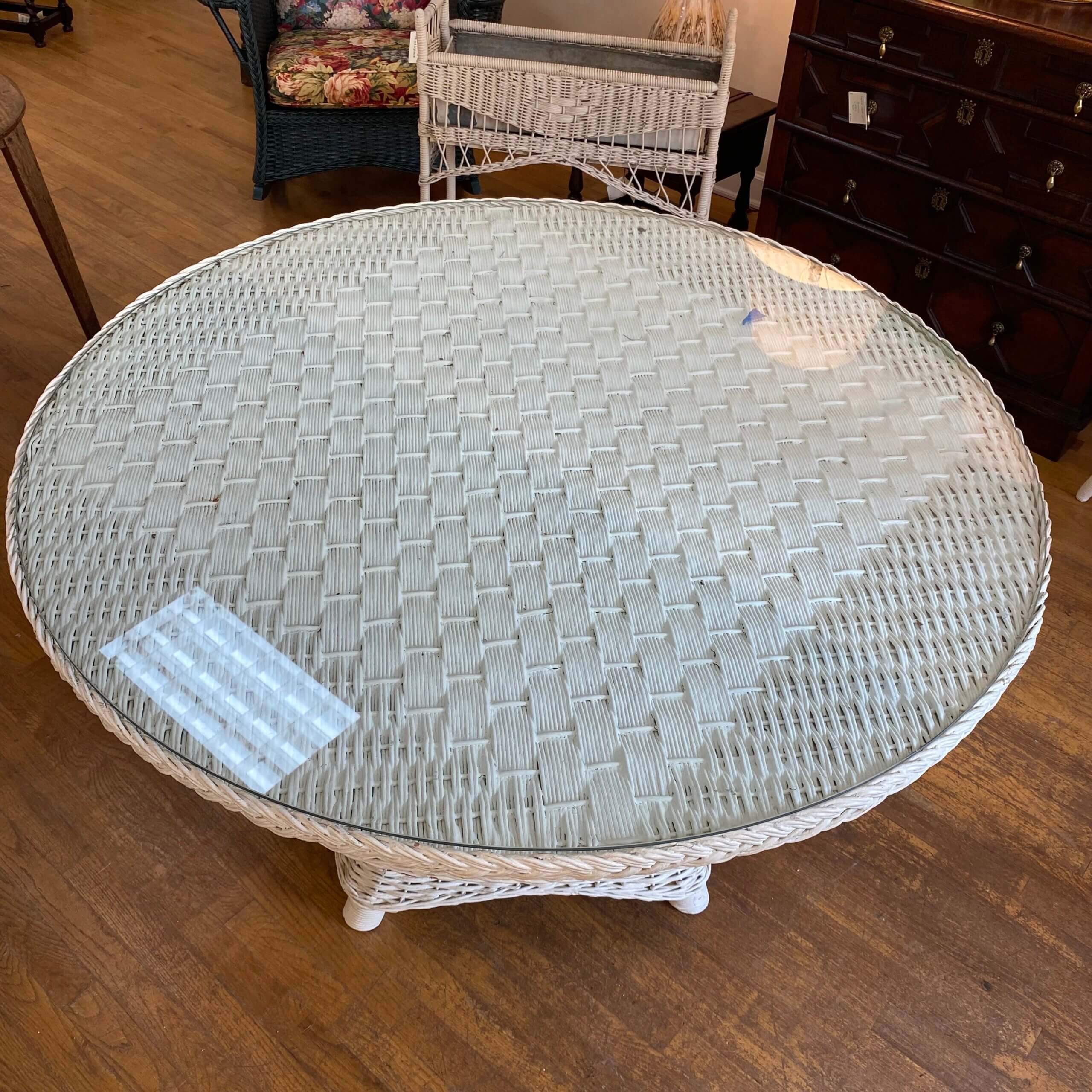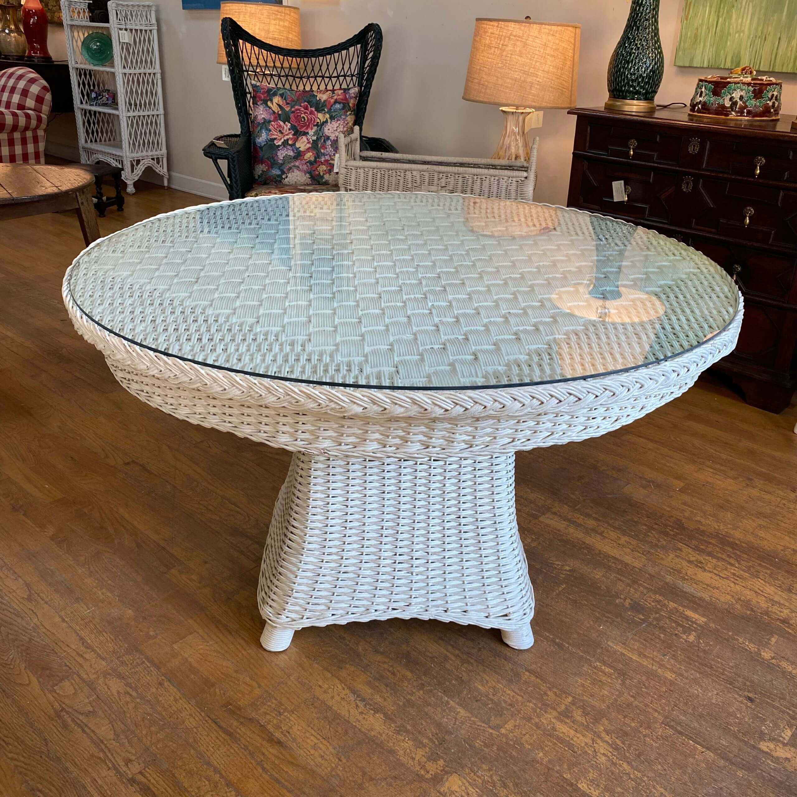 A fantastic wicker table that is large enough to use as a dining table or game table.
