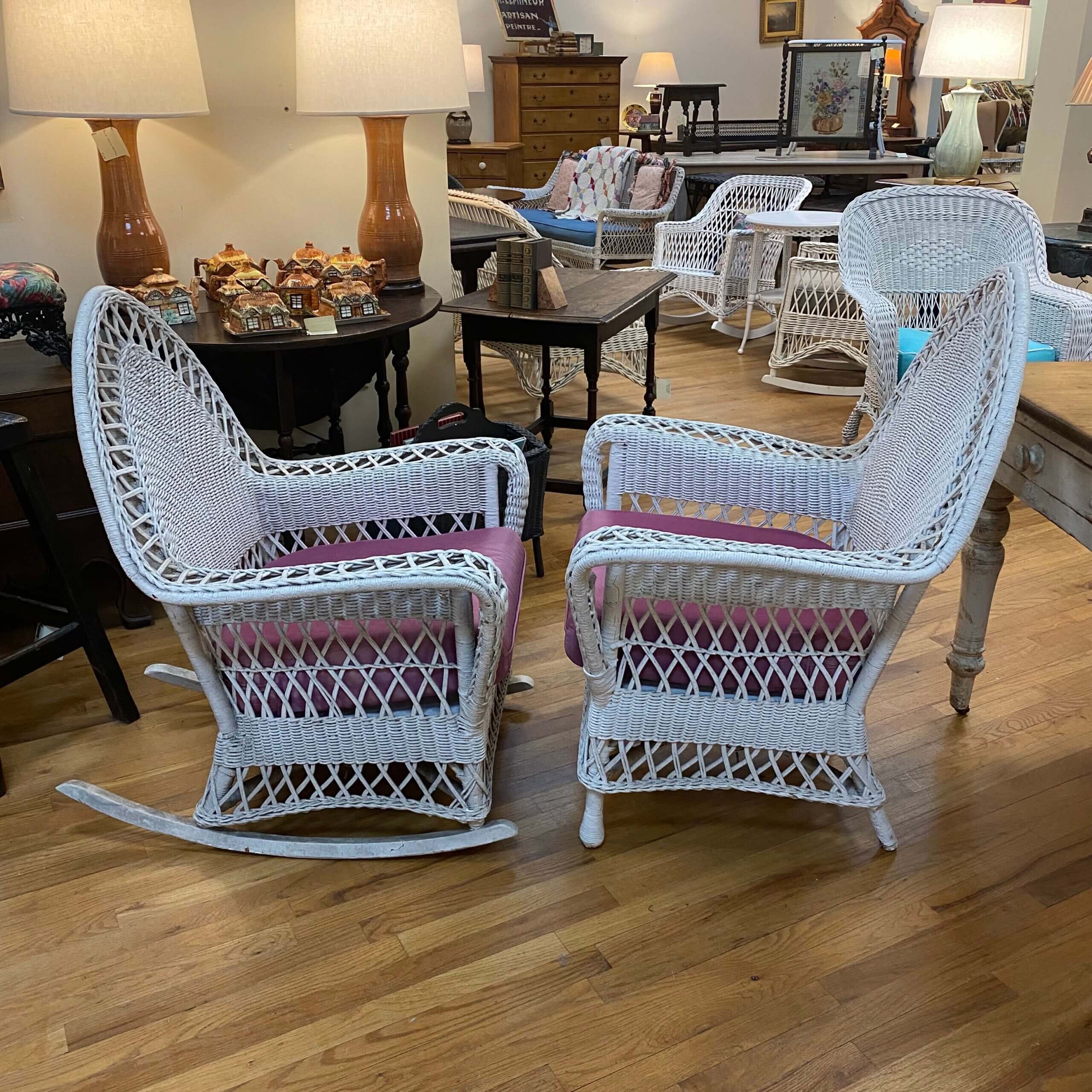 Art deco wicker rocker and chair #WIT8