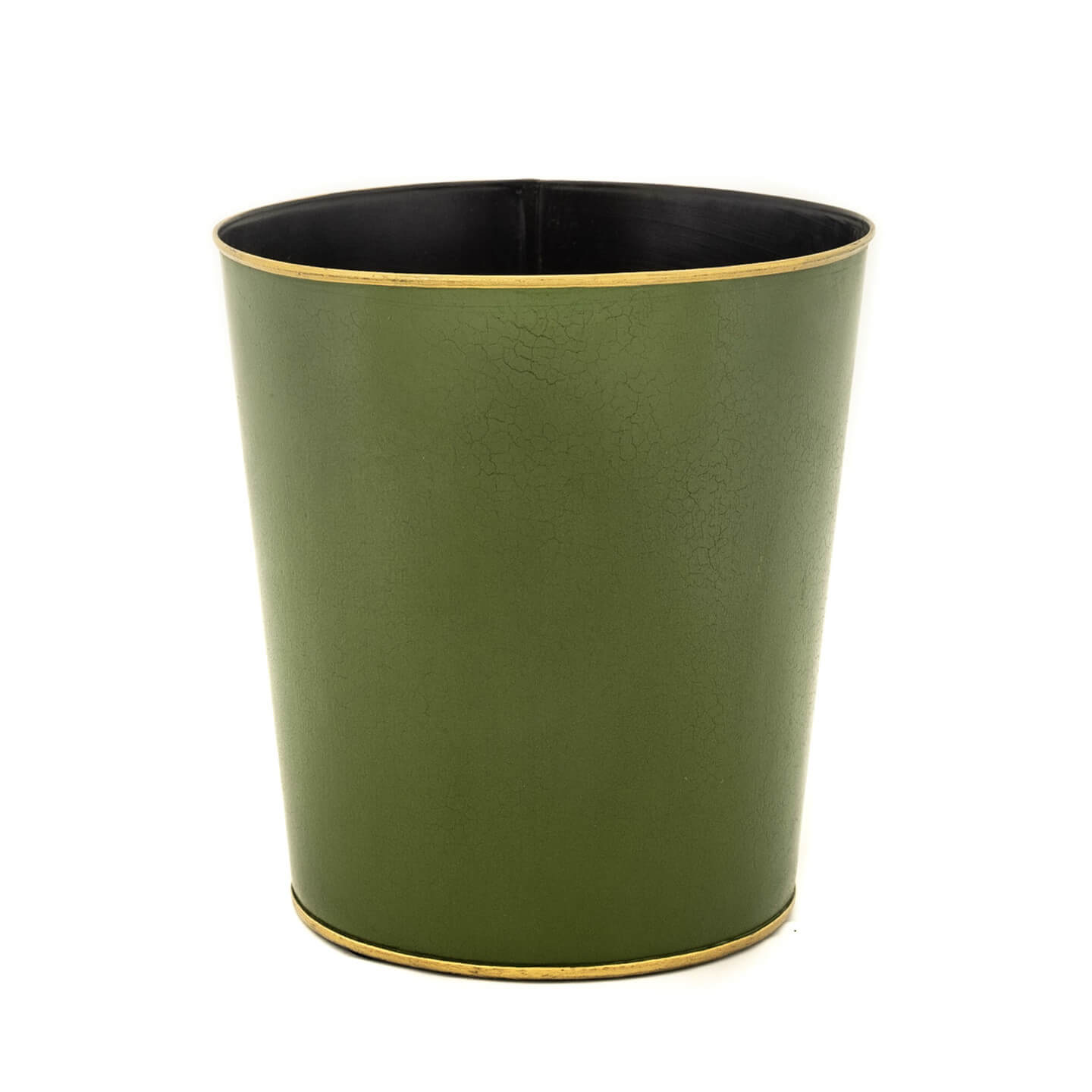 Avocado green plain tapered waste bin with crackle effect finish and gold detailing