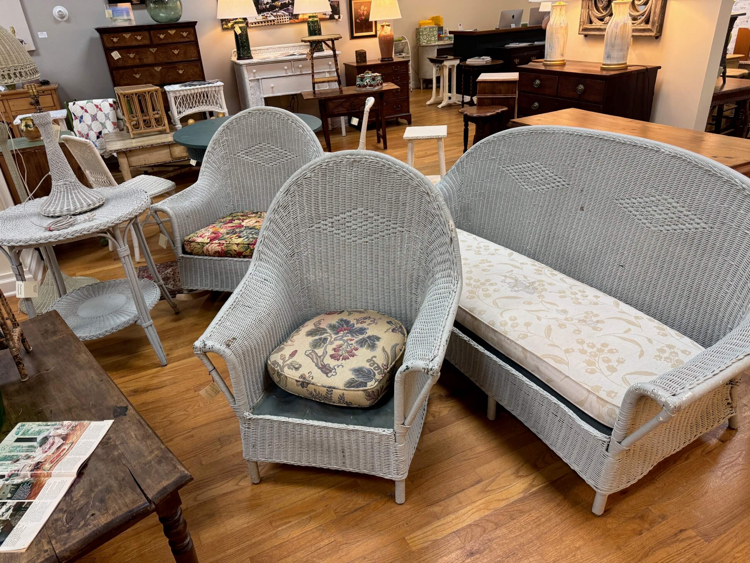 WIT # 26 Wicker Set (Sofa, 2 Chairs, 2 Tables, Lamp)